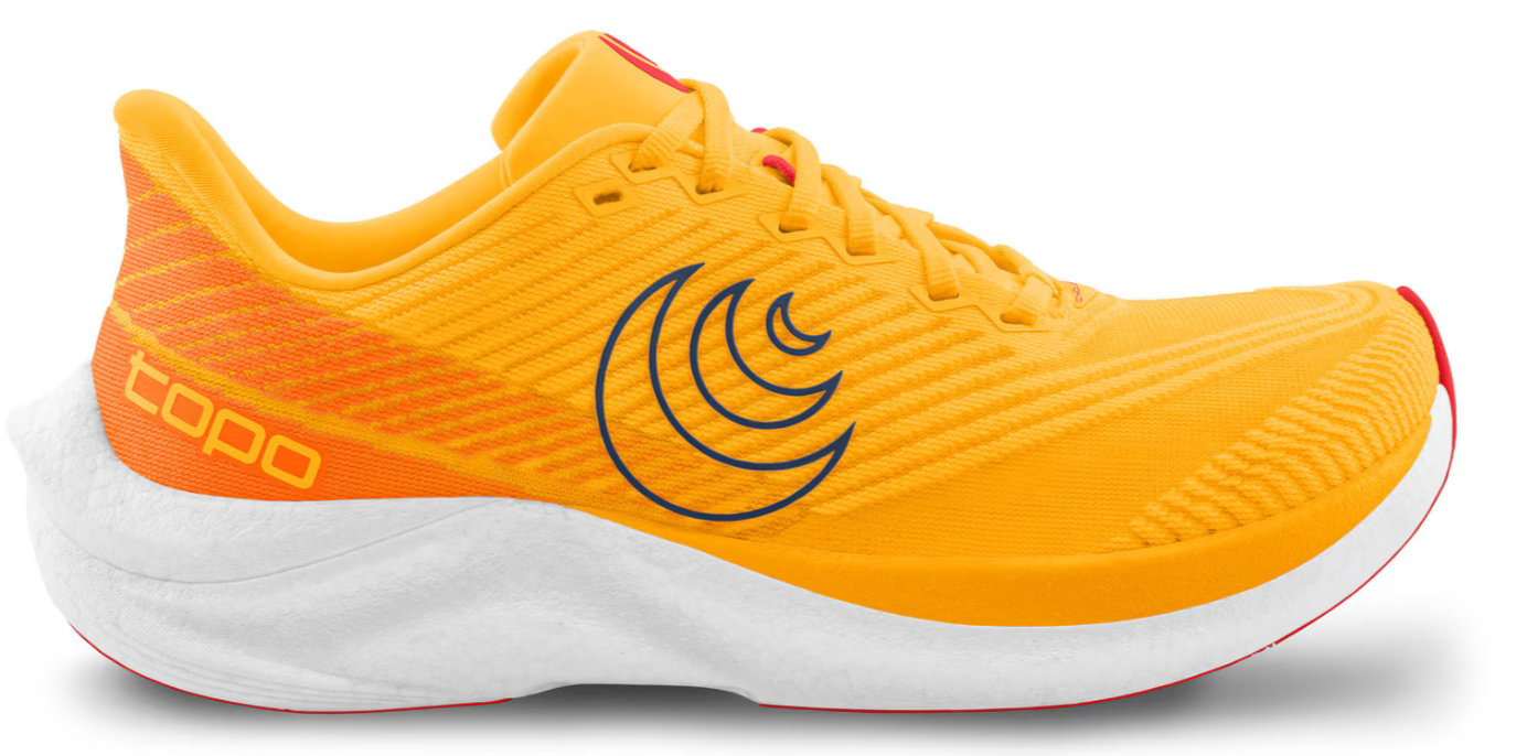 The Topo Athletic Cyclone 3 is your fast, lightweight performance trainer for every day running, workouts, races and more. With a Pebax Powered® midsole, Cyclone 3 delivers a responsive, energizing ride that’s as light as it is powerful. The redesigned mesh upper provides optimal ventilation and a fit so light it disappears around your foot. The rocker design ensures smooth transitions, while the strategically placed rubber outsole offers ideal traction while minimizing weight.