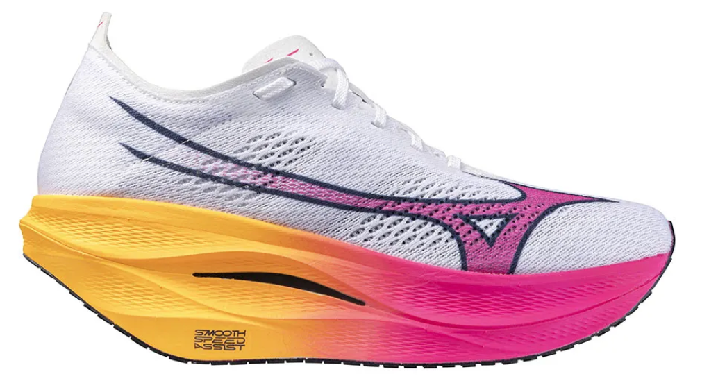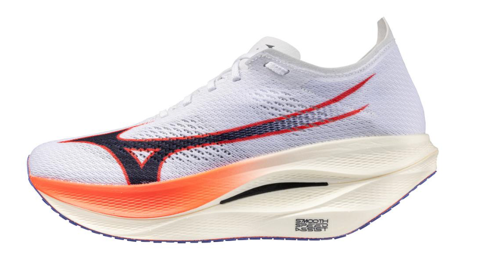 - Smooth Speed Assist: Mizuno's signature geometry that is designed for maximum performance. The significant heel bevel encourages an efficient midfoot landing, the midfoot contact point supports the calf and the aggressive forefoot rocker delivers a smooth and propulsive transition.